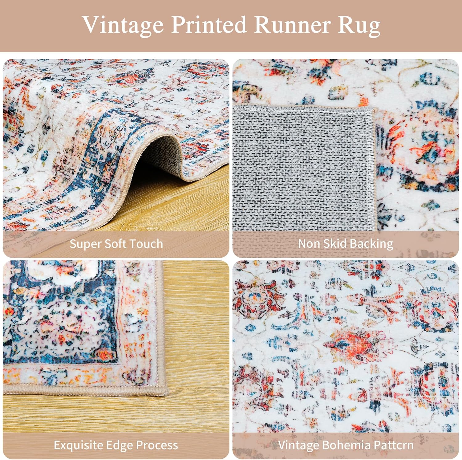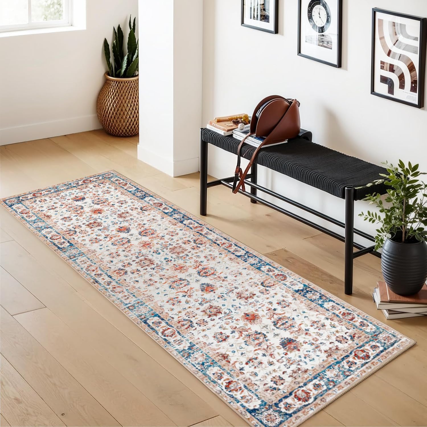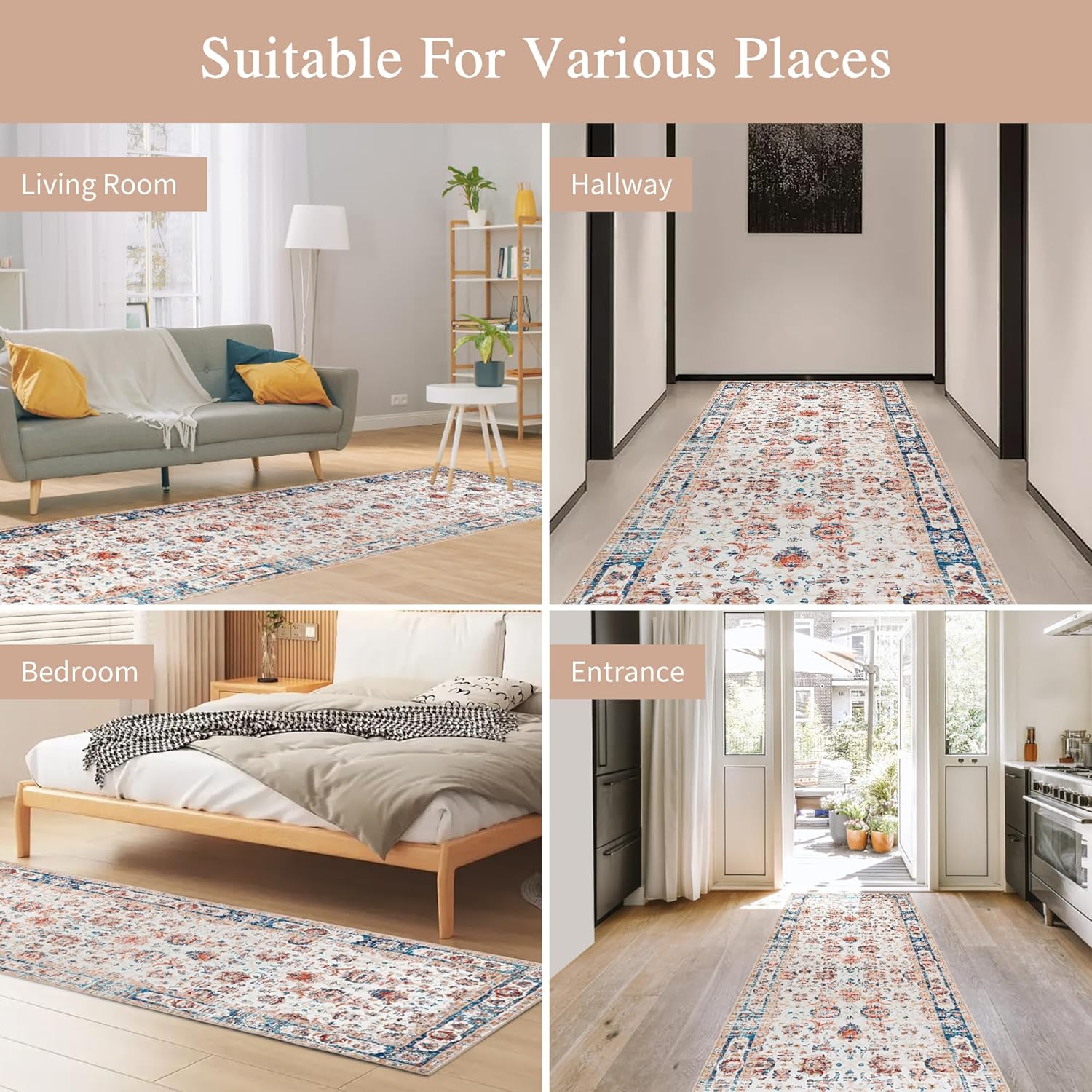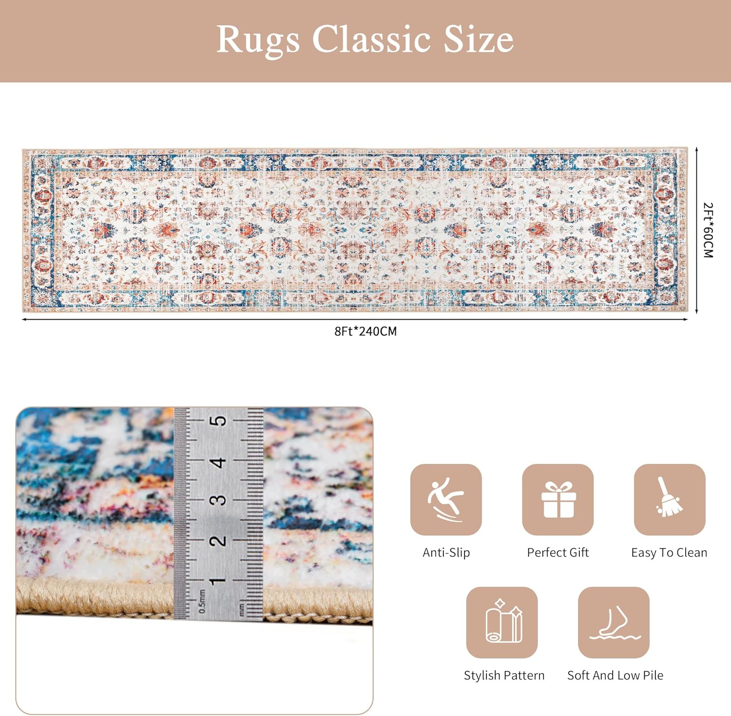 Hallway Runner Rug 2'x8' Washable Kitchen Rugs with Rubber Backing Boho Runner Rug for Entryway Indoor Non Slip Floor Carpet Runners for Laundry Room Living Bathroom Bedroom