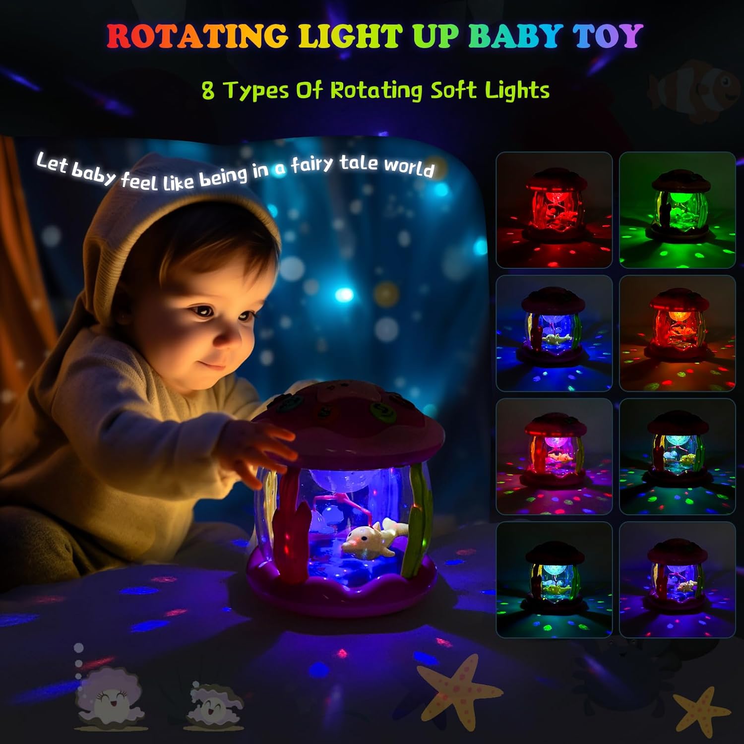 Are you looking for toys for your baby? M SANMERSEN baby toy is the perfect choice for you. This ocean rotating light up toy is a practical baby gift that promotes vision and hearing development, develops musical talents, exercises hand-foot coordination and accompanies your child’s healthy growth. Perfect for 6-12 months babies and 1-2 year old boys girls as a birthday gift, Christmas gift, Halloween gift, New Year’s gift or other holiday gift.