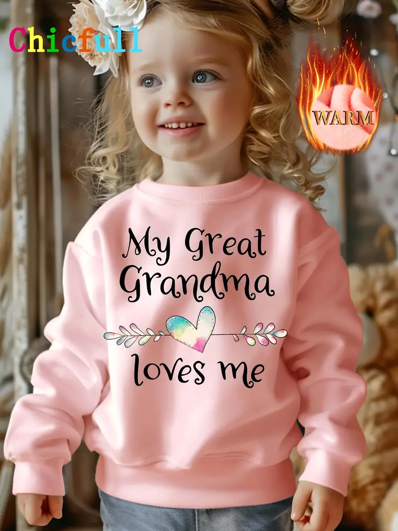 My Great Grandma Loves Me Cozy Long Sleeve Sweatshirt for Girls - Fall/Winter Thermal Lined Pullover