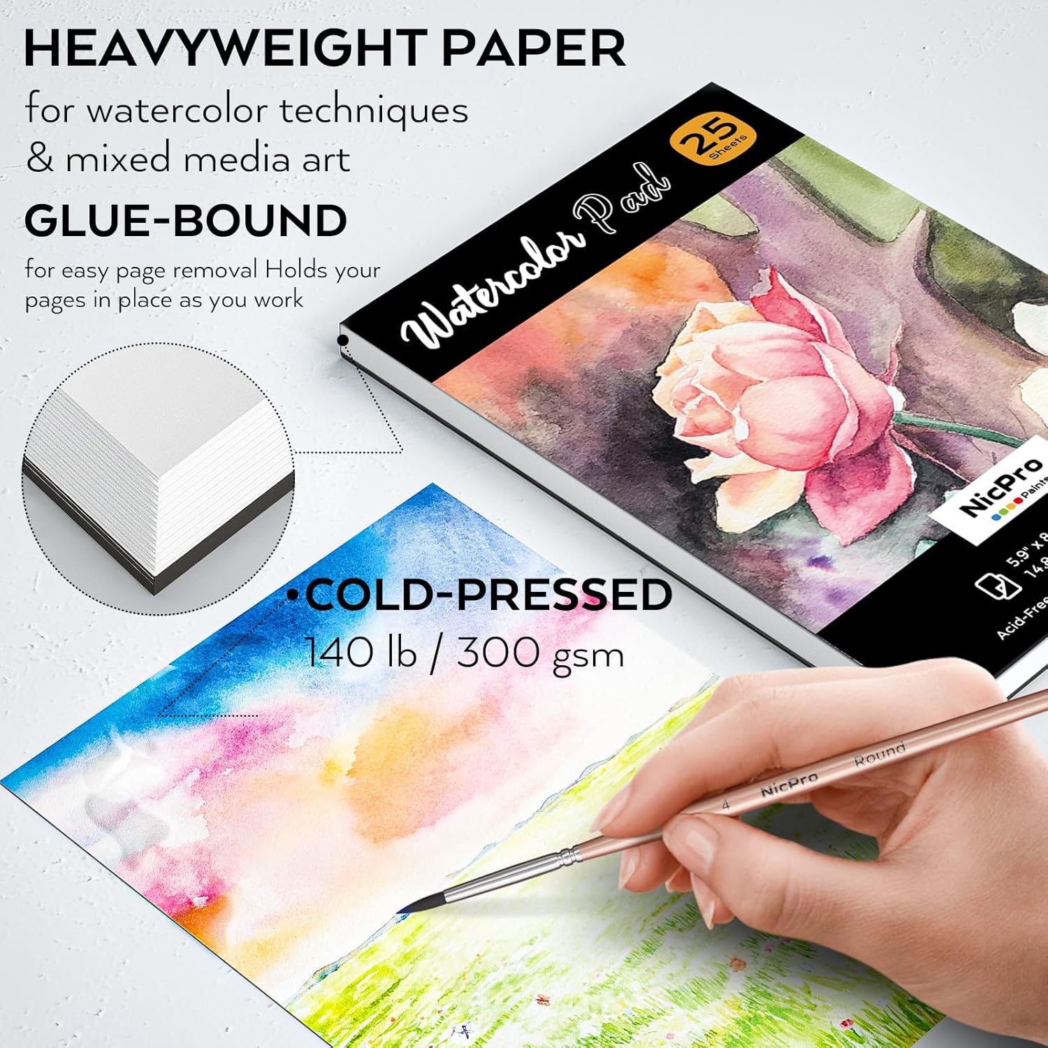 Nicpro Watercolor Paint Kit, Professional Painting Supplies Set 24 Tube Water Color Paints, 8 Synthetic Squirrel Brushes, 25 Paper Pad, Palette, Color Wheel for Artists, Beginners, Kids, Adults