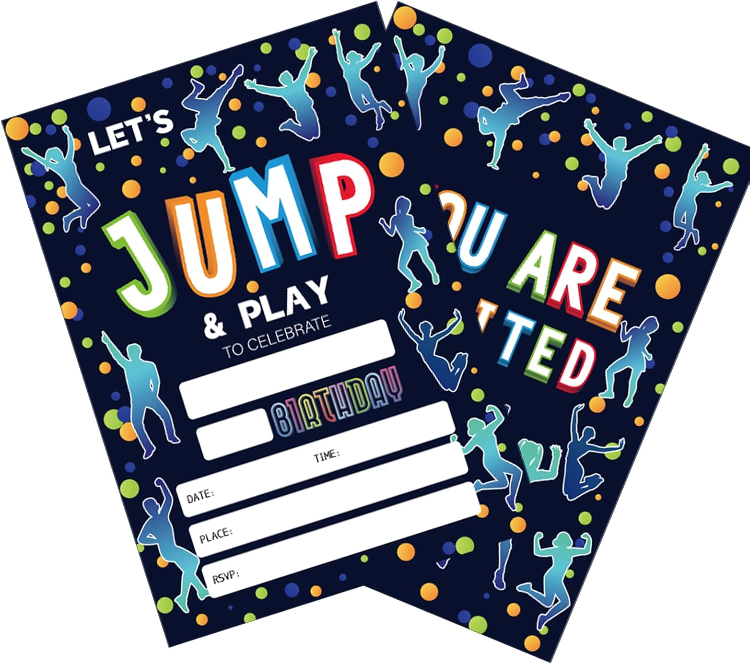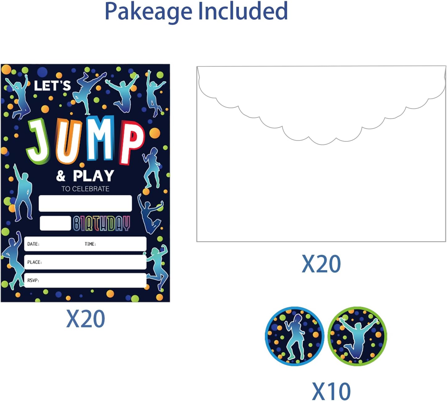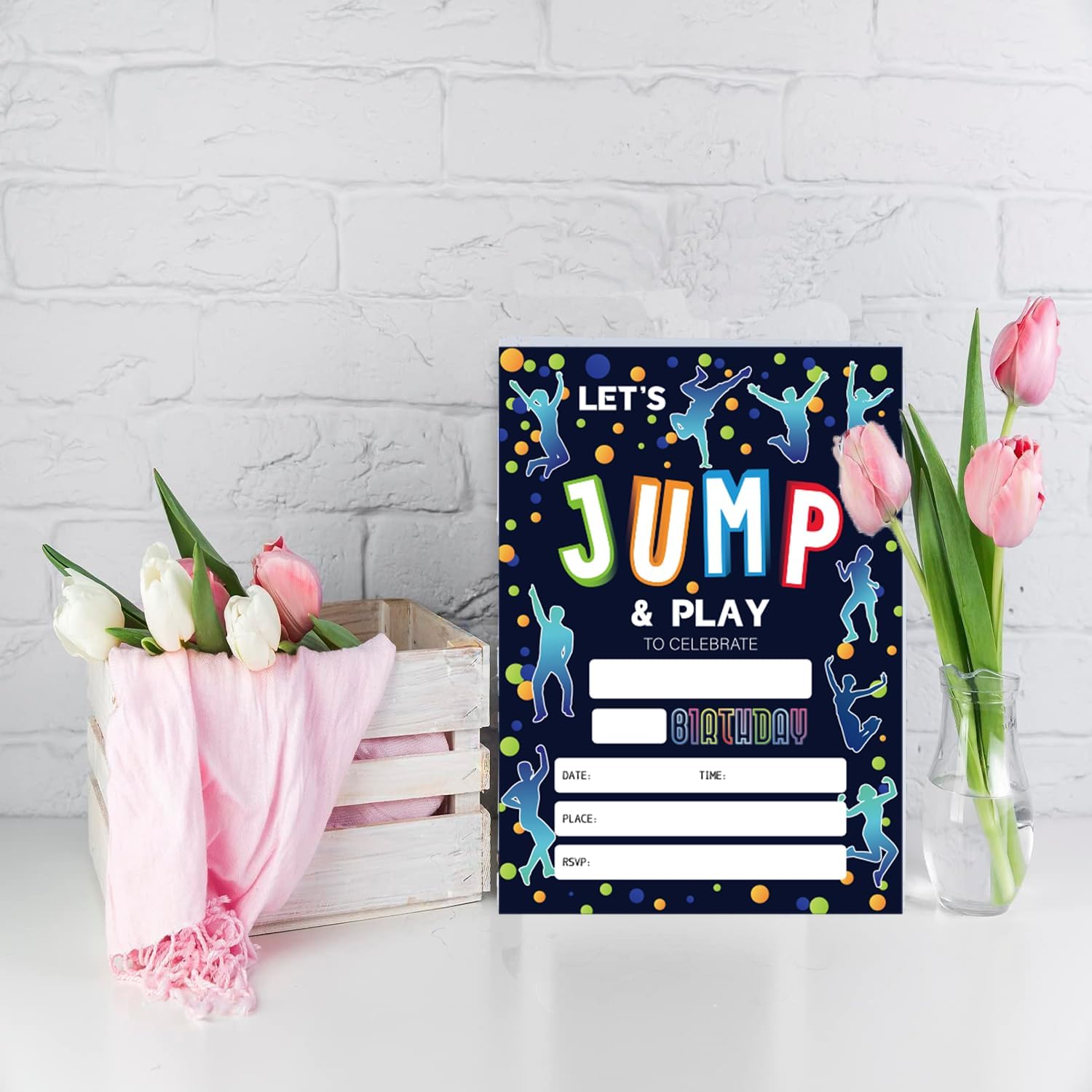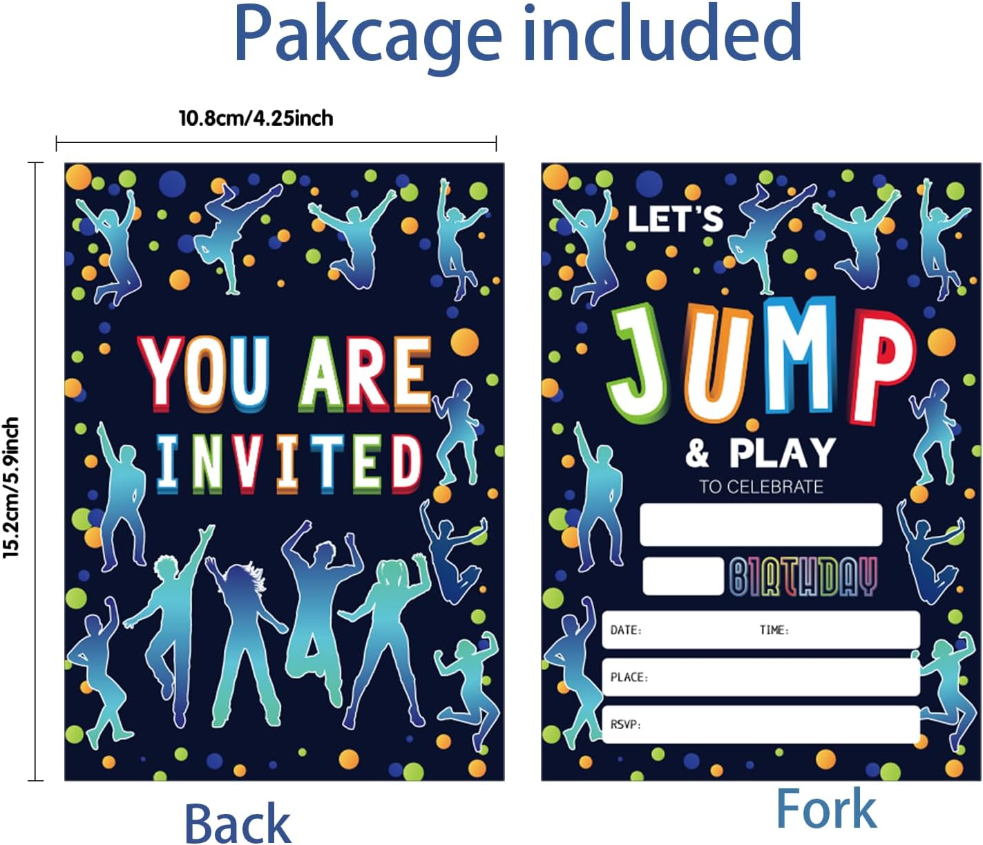 Trampoline Jump Birthday Party Invitations, Bounce House Birthday Invitations For Boys Girls, Kids Birthday Invites, Theme Birthday Party Decorations, 20 Invitations with 20 Envelopes