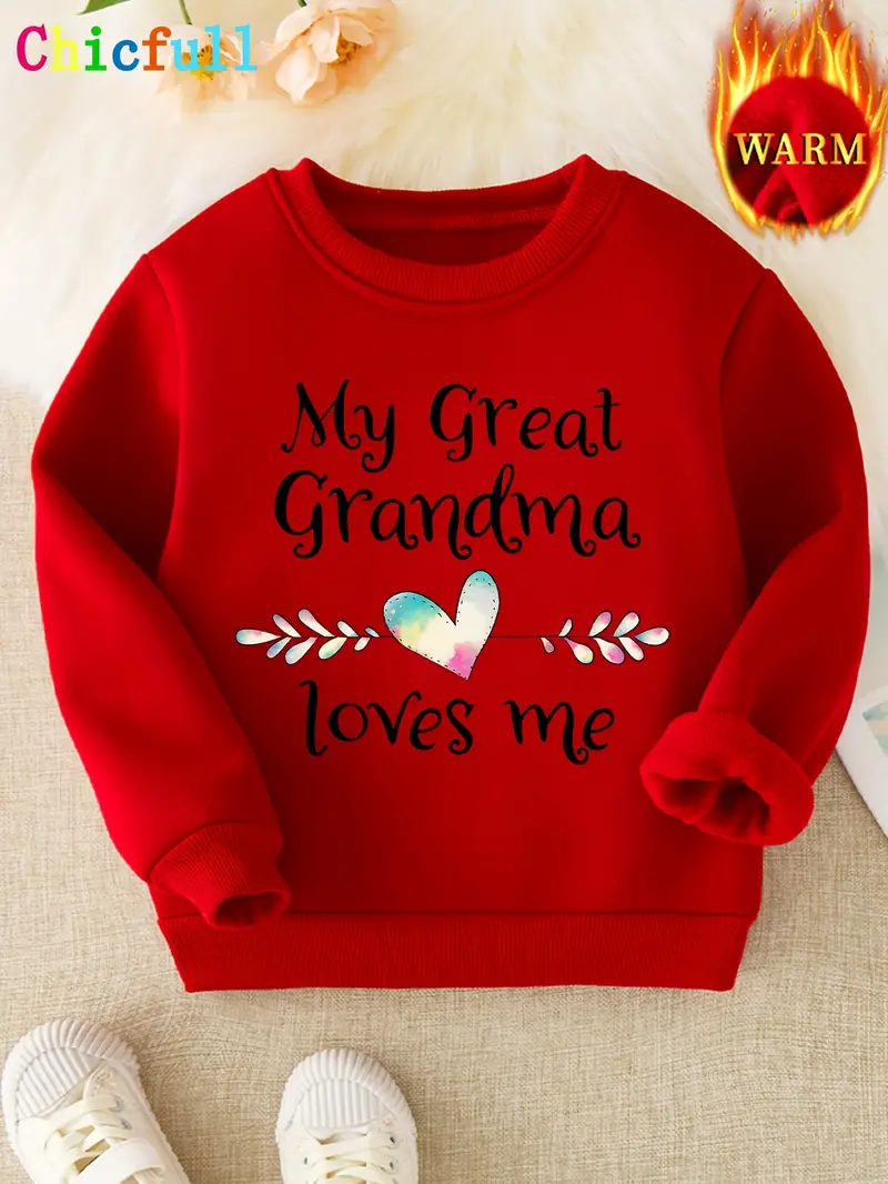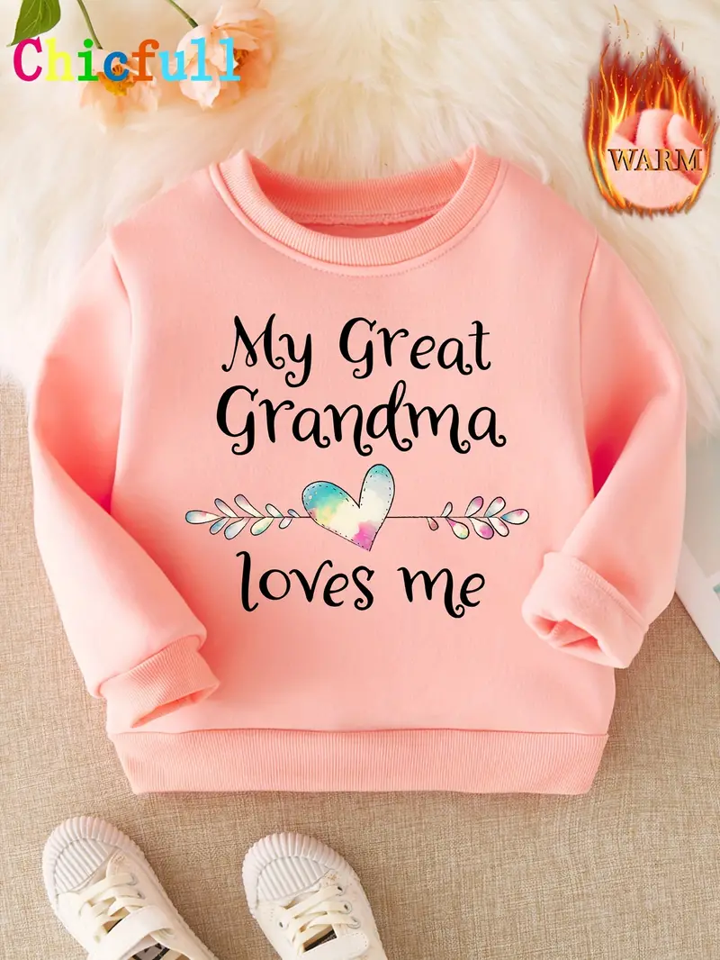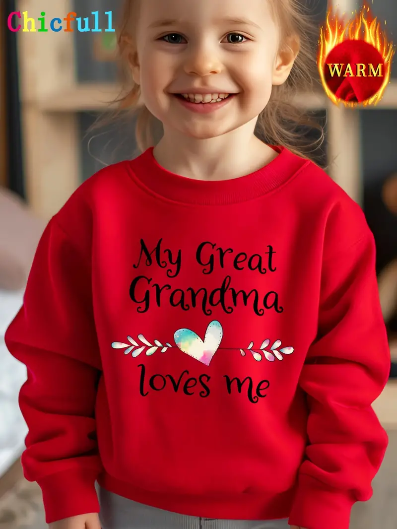 My Great Grandma Loves Me Cozy Long Sleeve Sweatshirt for Girls - Fall/Winter Thermal Lined Pullover